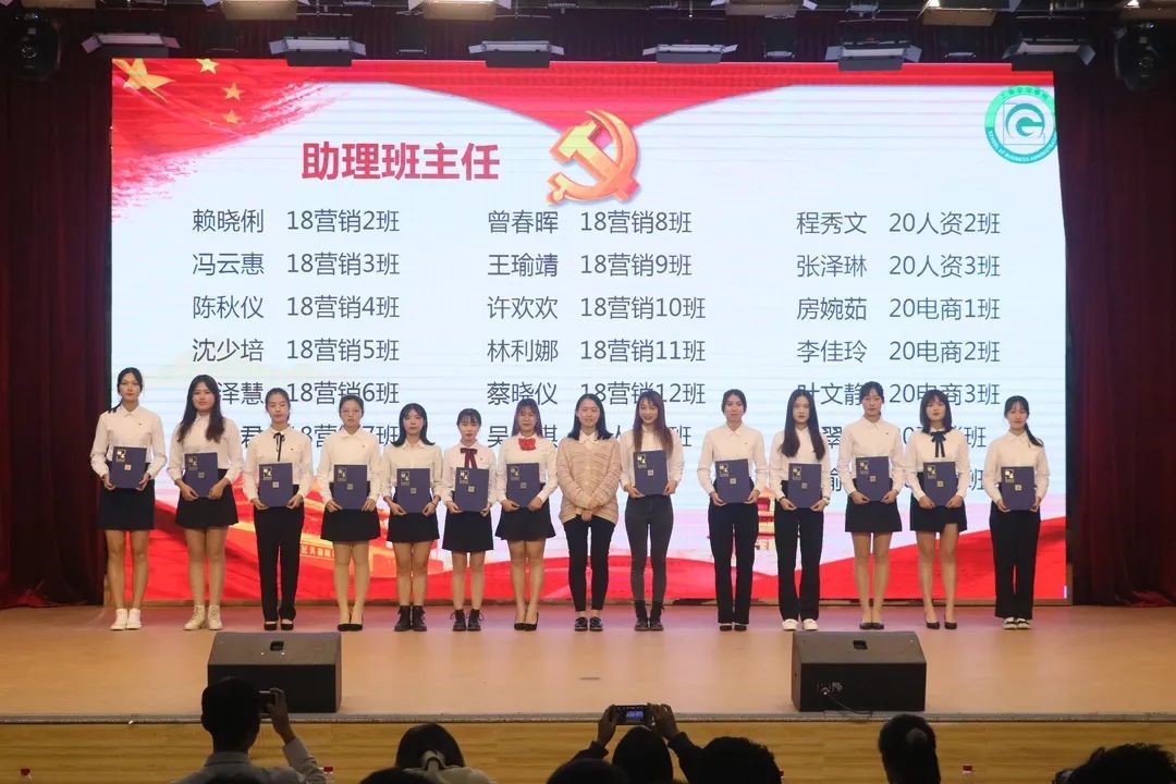伟德国际1946辅导员黄甜甜老师为助理班主任颁发聘书