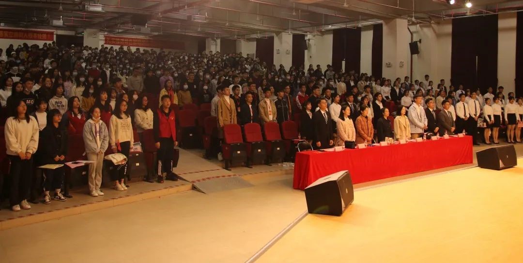 大会开始,全体成员观看了2019-2020学年工作总结视频,全体起立并奏唱国歌。