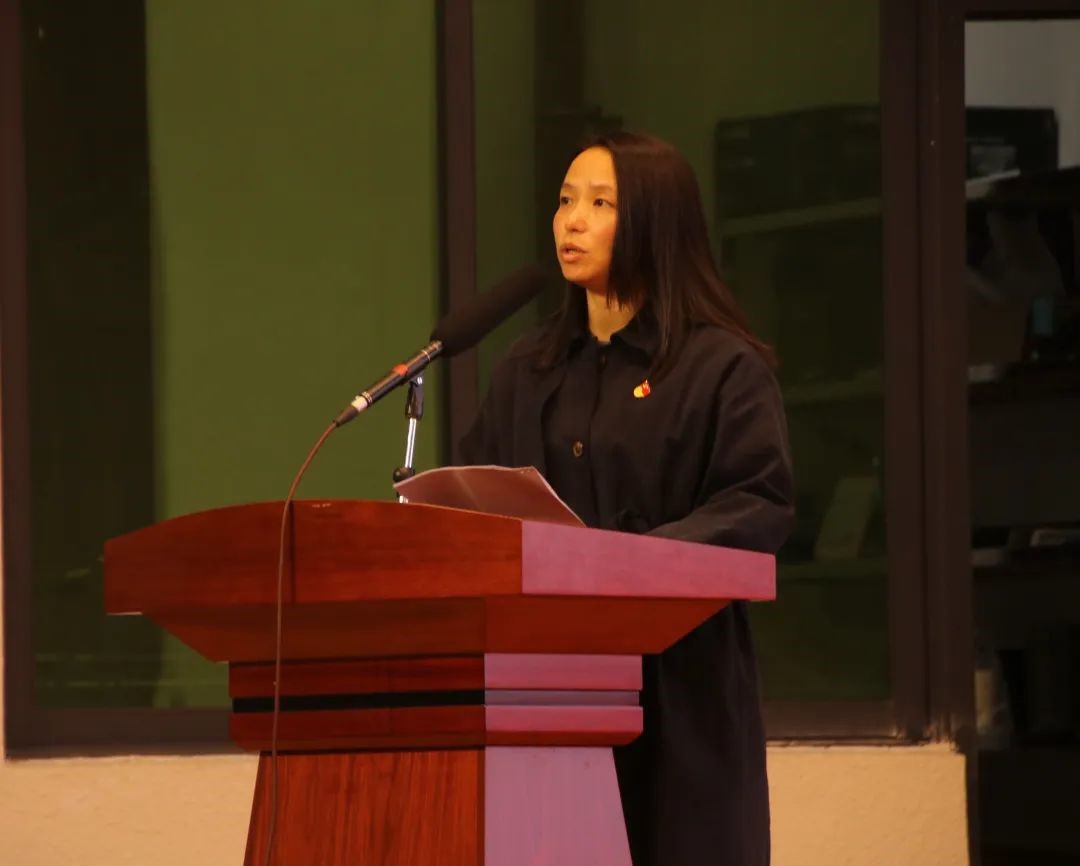 伟德国际1946员工党支部新任支委代表谢裕华同志上台发言