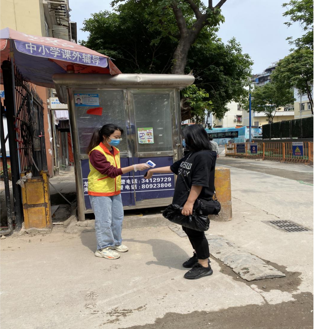 预备党员黄学思同志,自疫情爆发以来,她时刻关注、留意疫情情况,积极主动地参与居住地街道发起的抗疫志愿服务活动,为抗击疫情出一份力量!在参与活动的过程中,尽力尽责,工作态度认真负责,为每一位进入街道辖区范围的人士测量体温,提醒他们佩戴好口罩,并及时扫码出示“穗康码”,及时带体温异常的人员到辖区社工站进行进一步的体温测量和医学观察。