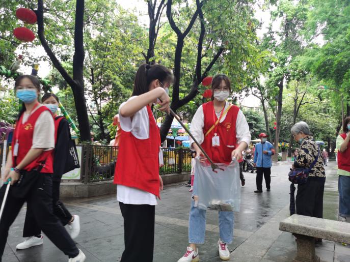 上午10时,全体同志有序分配任务以及工具后,对越秀公园各区域进行卫生清洁,将环保活动与重温党史有机结合,将为人民服务的初心和使命刻在心中。