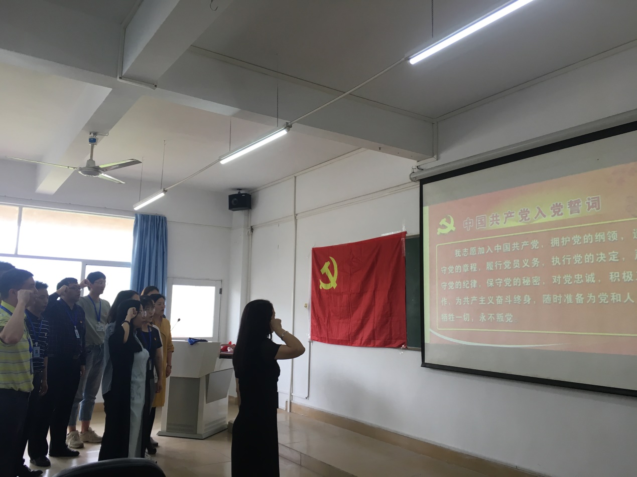 在会议最后,在杨惠书记的带领下,公司教工党支部的全体同志,重温入党誓词,让党员同志们进一步强化党的观念,增强党员意识,以自己的实际行动立德树人,发挥党员的模范带头作用。