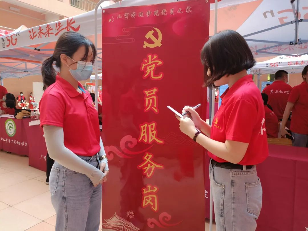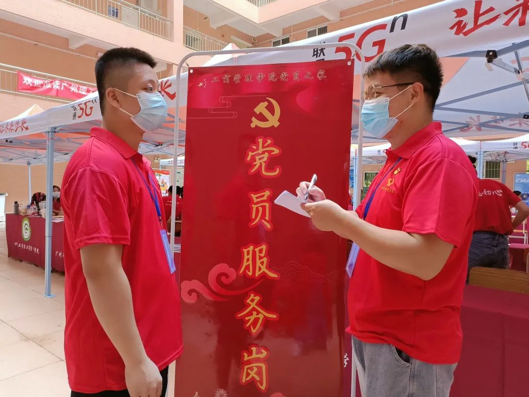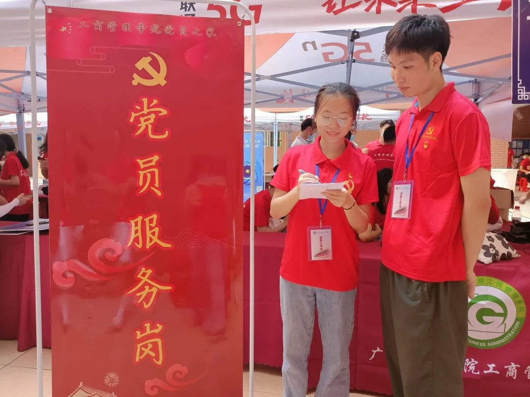 在7栋大本营处,公司设立了党员服务岗,党员服务岗主要负责的工作:解决新生或家长报到注册可能遇到的问题和困难;指引前往宿舍的路线,简单介绍公司学习生活情况;在特殊情况下为新生及家长带路或提供其他帮助。