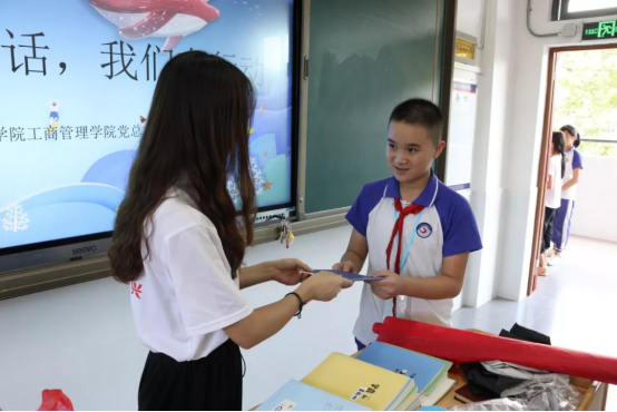 授课结束后,实践队为所有同学准备了精美的小礼品一份,希望同学们能够讲普通话用好,继承好。实践队队员们从中找到了推普工作的意义,更加坚定了持续开展推普振兴乡村攻坚工作的信心和决心。