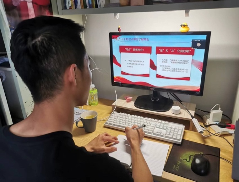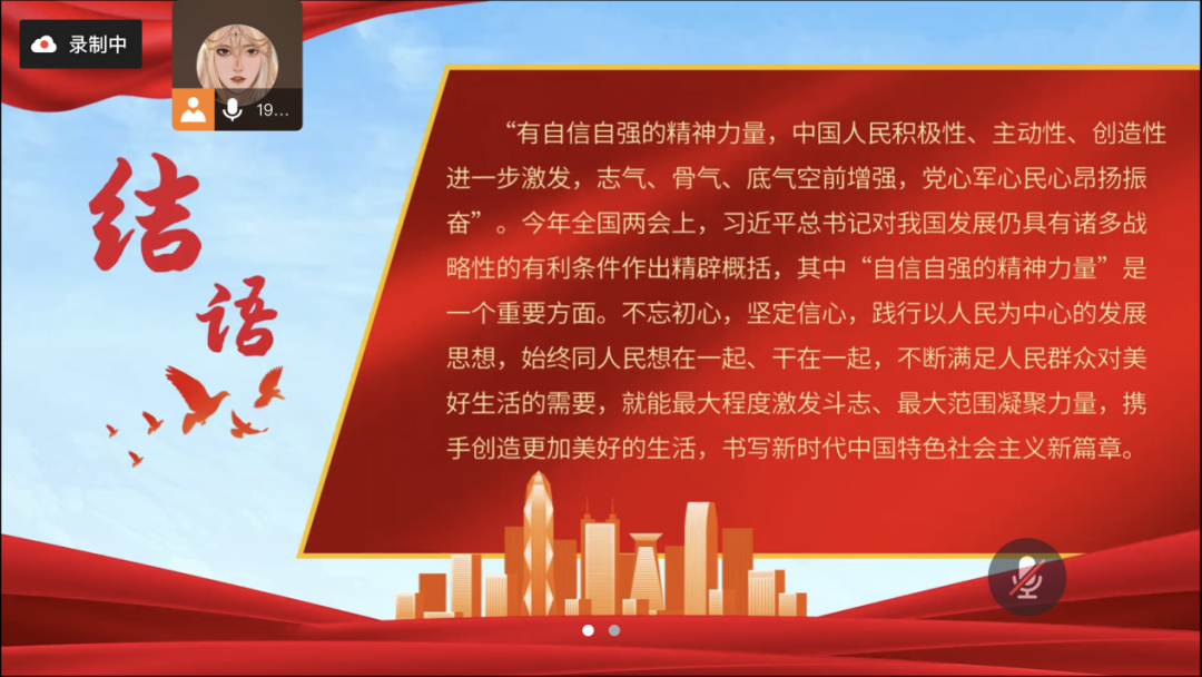 (欧阳雯 邹梓珊)伟德国际1946员工党支部组织2021年第二期积极分子于2022年4月21日下午四点在腾讯会议上开展“两会”学习宣讲会,本次线上会议到会216人,会议由黄洁颖同志主讲。