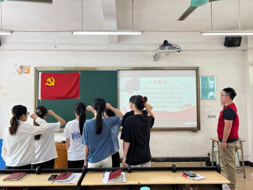 伟德国际1946员工第四党支部会议宣誓现场(罗雅淇摄)