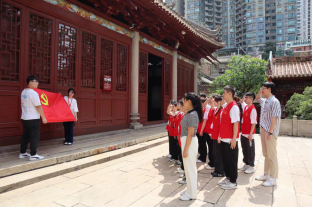 党员同志们怀着无比崇敬的心情踏入农讲所纪念馆,现场师生党员在讲解员的带领下,依次参观农讲所的历史陈列和展馆,聆听第一届至第六届农讲所历史,重温当年农讲所教员和学员为中国革命作出杰出贡献的伟大历程,感受中国革命的艰辛,领会中国共产党人艰苦奋斗的革命精神。带着对革命先辈的敬仰之情,员工党支部书记孟芳带领现场师生党员在大成殿前重温入党誓词。全体党员面向鲜红的党旗,高举右拳,以铿锵之声表达弘扬革命传统、传承红色基因的坚定决心。