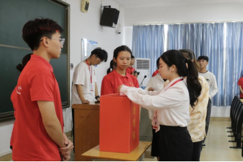 紧接着,监票人邱晨曦同志上台对投票箱进行检查,同时复核参加选举的人数。支持人详细宣读了填写选票的注意事项后并向正式党员们逐一分发选票,在填写完选票后,党员同志们纷纷上台进行无记名投票。监票人、计票人对选票进行审核清点,确认选举是否有效。清点工作结束且确认无误后,主持人仵允秋同志当场宣布了得票情况。