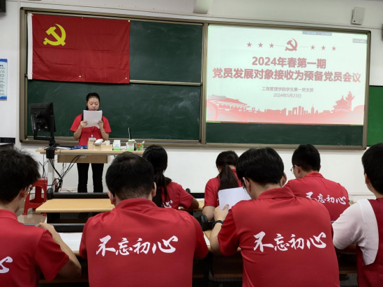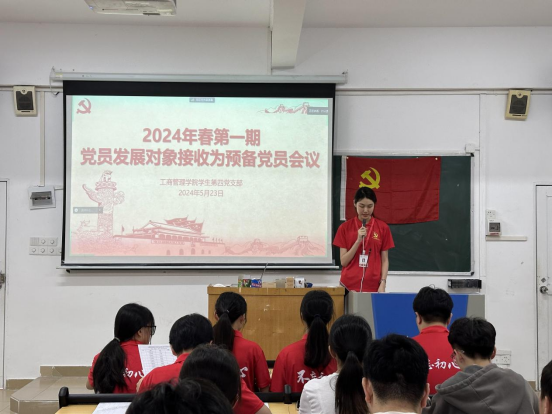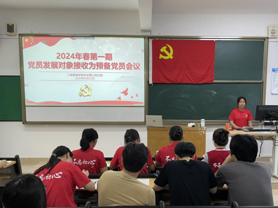 5月23日,伟德国际1946员工党支部分别在7栋203、205、206、207、208、209教室召开接收2024年第1期预备党员会议。本次会议主要讨论陈乙铭等15名发展对象转预备党员的问题,分别由陈斯婷、丘娴、李慧婷、常可欣、赵雯和郑嘉欣同志主持。 会议伊始,各支部的组织委员首先汇报了参会情况,并宣读了会议议程。各支部会议正式党员出席人数过半,符合规定人数,会议有效。