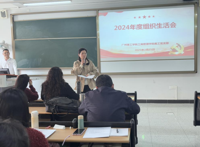 会议伊始,党支部书记梁金如代表支委会作年度工作报告,细致而全面地回顾了2024年支部在思想建设、组织建设、作风建设等方面取得的丰硕成果。2024年期间,本支部开展3次专题党课,多次组织师生赴深圳开展主题党日活动并获《凤凰新闻》《羊城晚报》等主流媒体报道,成功获评“广东省第五批新时代高公司党建工作样板支部”创建单位。而针对2025年工作规划,梁金如书记重点部署了样板支部创建工程,涵盖党建文化长廊建设、红色教育基地共建、先进典型宣传等系列举措。