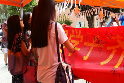 “消防月”第一个活动,是开展了消防安全倡议签名和猜灯谜游戏环节。虽然天气炎热无比,但消防安全倡议仍得到许多同学的支持,签名所用的横幅写满了同学们的笔迹,而另一边的猜灯谜游戏也吸引了同学们的热情参与,摊位上充满了获奖同学的笑声,以及同学们在灯谜游戏中学到消防安全知识的喜悦。