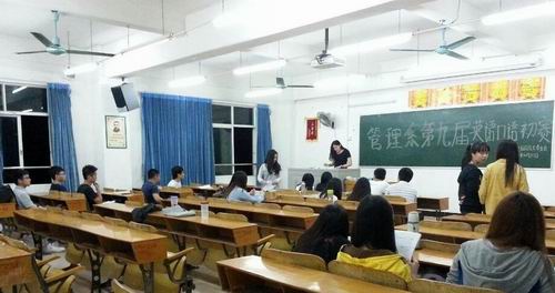 本系讯(通讯员:李锦栋)2014年4月10日晚,以“Where has our time gone?”为活动主题的管理系第九届英语口语大赛初赛在我系大一各班级中举行。英语口语作为现代国际交流不可或缺的载体,我系特此为同学们提供了一个锻炼自我的平台,畅游在英语的海洋!