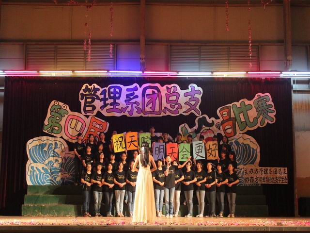 本系讯(通讯员:佘炜冰)12月5日晚,我系以“正能量”为主题的团总支特色活动大合唱比赛在体育馆隆重举行。出席本次比赛的嘉宾有管理系党总支书记杨晓文、办公室主任钟清恒、团总支书记钟劲、办公室辅导员以及各系团总支员工会主席团成员和团总支员工会代表等。