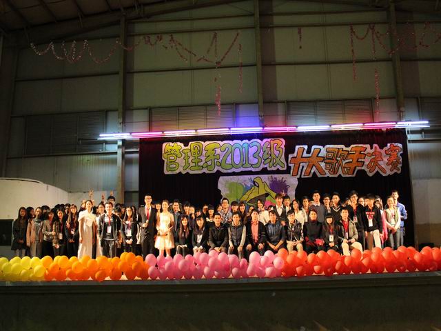 经过近半个月的层层选拔,12名成功晋级的选手站上了决赛的舞台。比赛场面异常火爆,气势磅礴的《潇洒走一回》、温暖贴心的《偶尔》、柔情似水的《痴心绝对》深受观众的喜爱,让在场的所有人感受到他们洋溢的青春热血。选手们怀揣着激情与梦想,用他们美妙的歌声感染了观众们的心灵。经过两个小时的激烈竞争,各个奖项尘埃落定。微博投票产生的最高人气奖由吴昊同学获得,刘尘染同学自信大方的姿态,征服了评委的视觉荣获最佳台风奖,深情演唱的朱嘉妮同学凭借着的悉心装扮荣获最佳造型奖,蔡俊明、陈伊可、李柏威、吴昊、马潼锐、陈瑶、黄学炼、许繁、黄颖祺十位选手荣获管理系2013级“十佳歌手”称号。