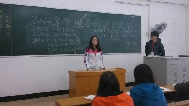 本系讯(通讯员:程芳)2014年3月12日,管理系团总支在经管楼412课室召开了我系2014年团支部会议。团总支副书记陈淑榆、团总支组织部部长金泓、副部长钟鹏麟、团总支宣传部部长邓雅珊、副部长余敬敏出席了本次会议。2013级各班团支书、组织委员和宣传委员也积极地参与到本次会议中。