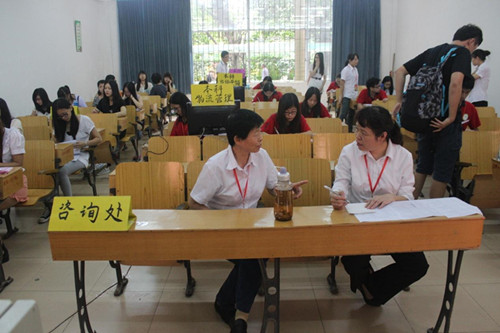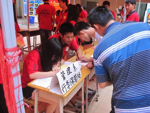 在本次迎新工作中,我系专门设立家长休息区,开展新生报到一对一全程跟踪服务。2013级大一新生在我系团总支员工会迎新工作人员的带领下,顺利地办理好入学注册、办理一卡通、领军服、入住宿舍等手续。迎新工作人员热情地帮新生们搬行李,耐心地回答、解决他们对学习和生活中的问题,坚持用热情感染每一位新生。新生与家长都纷纷表示真真切切地感受到了我系这个大集体的热情与温暖。