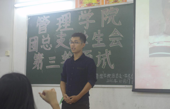 (通讯员:何彬彬)10月17日,公司2016级招新活动最后一轮面试在经管楼圆满落幕。参加此次面试的嘉宾有公司团总支书记黄伟剑老师和公司团总支·员工会的所有成员。
