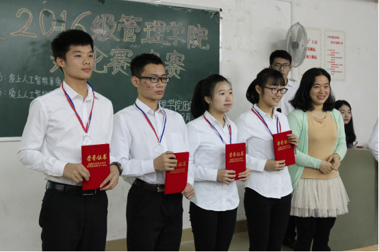 随后进入颁奖环节,由公司团总支副书记兼员工会主席孙李为来自人资2班的叶若彤等15位最佳辩手颁奖,公司办公室老师赵竹君、团总支书记黄伟剑、办公室主任肖柳为前三名获胜队伍颁奖。最后由黄伟剑老师上台总结,他表示,辩论没有绝对的对与错,希望辩手们能从比赛中学到知识,收获友谊。同时,他也对本届辩论赛的工作人员予以充分肯定。