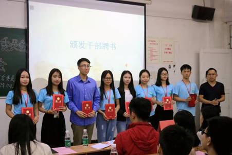 在全体人员观看了宿委会视频后,第四届宿委会会长王湛演对管理公司宿舍委员会做年度工作总结,对本年工作成果进行回顾。紧接着,管理公司宿舍委员会指导老师黄浩老师宣读第五届宿委会干部名单。黄伟剑书记为第四届优秀干部、干事颁发聘书以激励其一年来的工作成果。随后,新任会长陈其承做新一届的工作展望,积极倡导管理公司宿舍委员会成员秉持“细心、耐心、恒心”的工作原则服务同学,为管理公司学子创造更良好的宿舍环境。