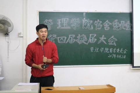 最后,指导老师黄浩老师为本次大会作总结性讲话,在对宿委过去一年工作表示肯定的同时,希望新一届宿委成员能以务实履职的态度做好宿委会工作,更上一个新台阶。此次换届大会的顺利召开不仅为宿委会注入了新的活力,并且调动了大家的工作激情。新一届的宿委会成员纷纷表示将不负使命,为管理公司宿舍委员会的工作尽自己的最大努力。