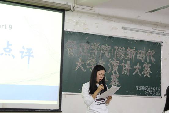 11月30日晚上,为活跃校园文化气氛,给同学们一个展现自我的舞台和提升自我的机会,公司于7栋418教室举行2017级新时代老员工演讲大赛。此次比赛的评委有办公室老师赵竹君老师、辅导员伍小英老师和往届演讲大赛优胜者;嘉宾有团总支书记黄伟剑老师、辅导员黄浩老师、团学主席团成员,主持人为学习部大一干事邝彩月、陈柏青。