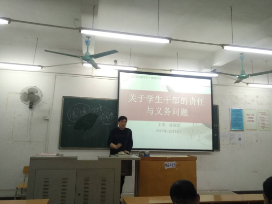 (通讯员:郑佳柔)12月14日下午,公司团校第四期员工干部培训班第四堂课在6栋303A顺利召开。主讲人为公司党总支书记易国富,他为公司员工干部带来了《关于员工干部的责任与义务问题》的专题讲座。