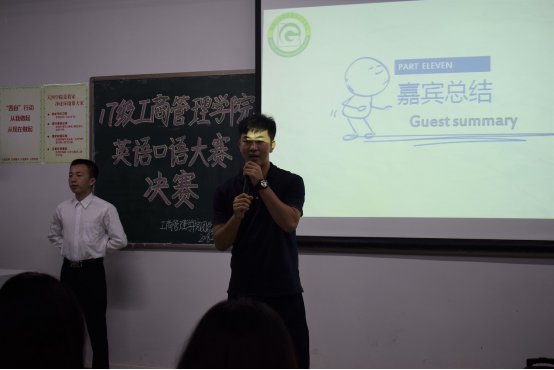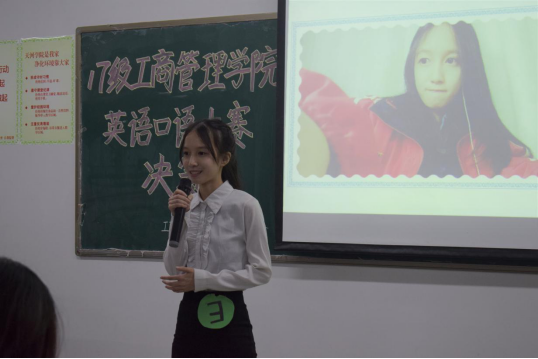 经过激烈比拼,9名选手脱颖而出进入决赛。决赛期间,各个选手分别就“乐观者与悲观者”主题讲述自身独特故事,随后,以抽到的图片为主进行演讲。最终17营销2班谢应宁以优秀的口语表达能力勇夺桂冠。