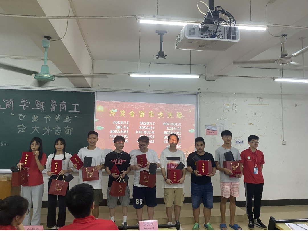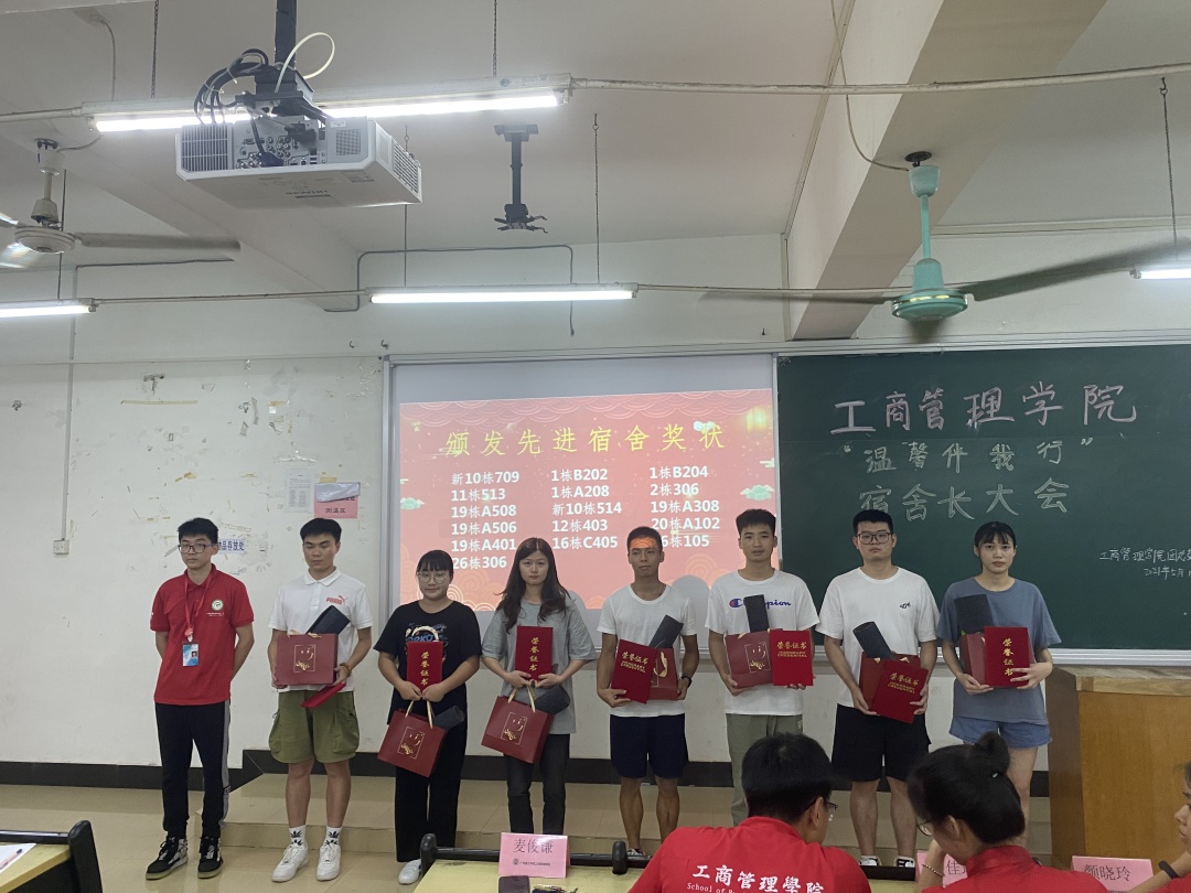 紧接着,大会对先进宿舍进行了颁奖表彰。获得先进宿舍称号的有新10栋709、1栋B202、1栋B204、11栋513、1栋A208、2栋306、19栋A508、新10栋514、19栋A308、19栋A506、12栋403、20栋A102、19栋A401、16栋C405、26栋105、26栋306。希望获得荣誉的寝室再接再厉、继续保持,其他寝室借鉴学习、争取获得奖励。