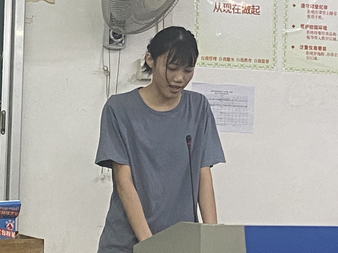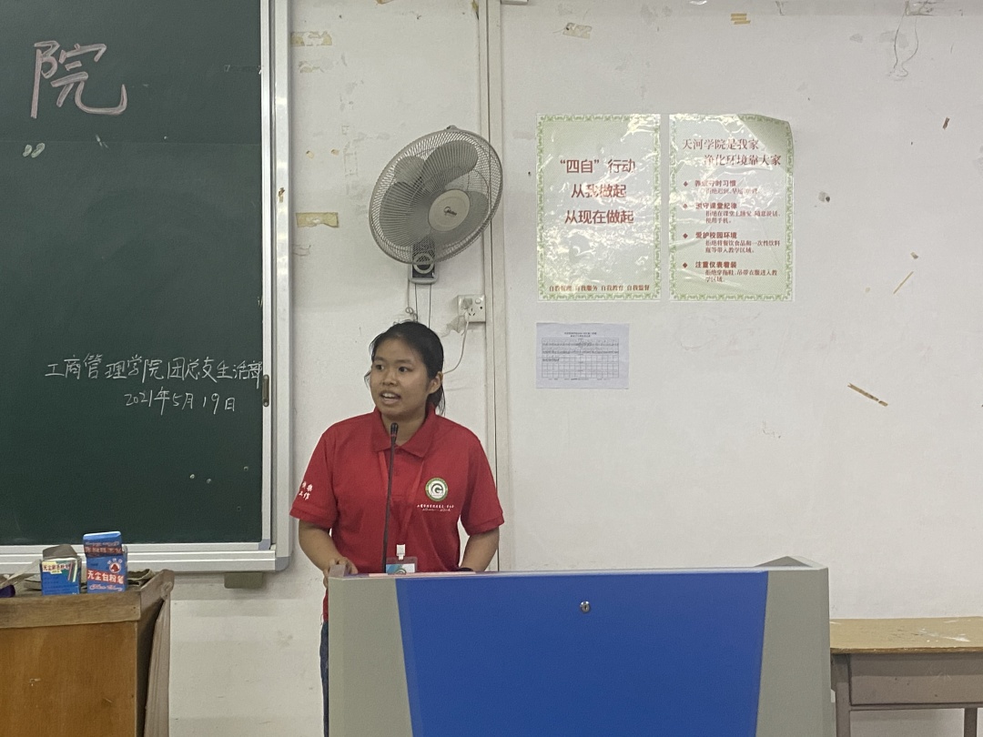 会议在轻松愉悦的氛围中接近尾声。常务主席颜晓玲上台发言总结,她对到场人员表示感谢,点明本次宿舍长大会的目的是为了让同学们养成爱宿舍,护宿舍,守宿舍的良好习惯。颜晓玲主席激励在座各宿舍长带领宿员共同努力,打造更加和谐、宜人居住的宿舍,构造良好的宿舍氛围,营造良好的宿风宿纪,促进情感,共同创造美好的宿舍。