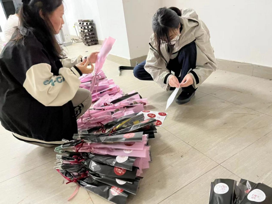 3月7日晚20时,伟德国际1946团总支·员工会部分工作人员在行政楼103教室为节日的送花工作做准备。工作人员认真清点并整理花束,细心地在每一束花上贴上对老师的祝福语贴纸,每一支认真贴好摆放的花束都代表着同学们向女教师们送去了衷心的祝福,表达了公司对女教师们做出的努力和成绩的肯定展现出人文关怀。