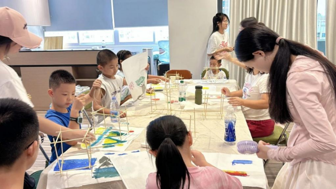 首先,活动开始,前来参加活动的青年人们在公司齐心协“绿”突击队成员的指导与协助下,利用废弃旧筷子、笔墨、宣纸、颜料等材料进行制作非遗环保灯笼。他们挥毫泼墨,将绿美广东生态建设的美好祝愿倾注于每个非遗环保灯笼中,每一步都凝聚着对传统文化的传承与对绿色环保事业的热爱。