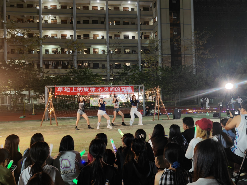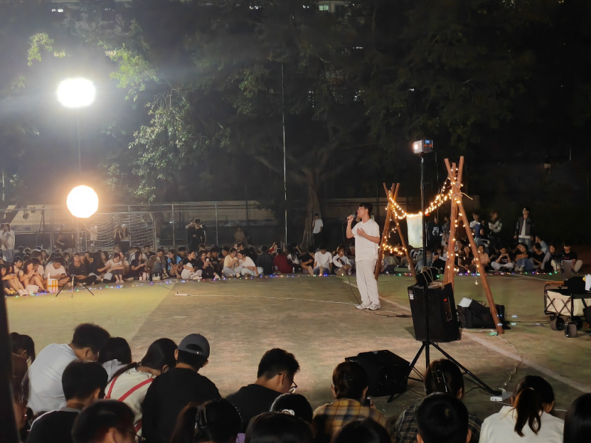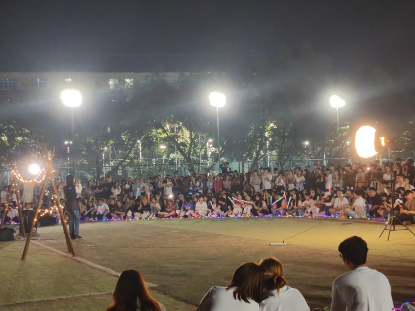 除了精彩的音乐表演,音乐节现场还布置了许多温馨的装饰。闪烁的彩灯、浪漫的泡泡,为这个夜晚增添了一份梦幻的氛围。音乐成为了连接彼此心灵的桥梁,让大家共同沉浸在美好的氛围中。现场的同学们纷纷挥舞着手中的荧光棒,跟着音乐的节奏尽情摇摆,仿佛一片闪耀的星海在草地上舞动。