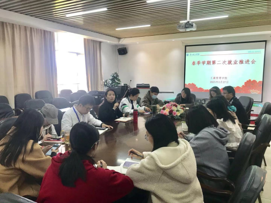 2月27日,伟德国际1946在综合楼503会议室召开2023届毕业生第二次就业推进会。党总支书记杨惠主持会议、就业老师和2023届毕业生辅导员参会。