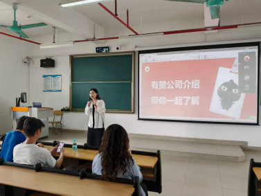 在院系领导的支持下,宣讲会于4月10日下午2点顺利召开,会议现场由电商系老师周卓凡、徐玉雪、胡学斌等与有赞科技企业代表进行对接。有赞科技营销经理陈丹琼围绕企业概况、核心业务与人才发展理念等方面展开详细介绍,重点阐述了营销顾问岗位的职责与成长路径,并结合实际案例解析私域电商行业的发展趋势与就业前景。互动环节中,在场同学与有赞人力资源汪经理就"私域运营模型应用"、"应届生职业规划"等话题展开了交流。