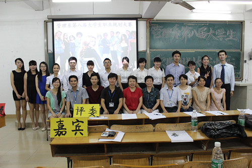 (通讯员:杨瑶)9月11日晚,管理系第八届职业规划大赛在综合楼318课室举行。担任本次比赛的评委分别是:系办公室老师张方超、王翔、崔运玲、林成园以及上一届职业规划大赛冠军刘莉莉。出席本次比赛的嘉宾有:招就办副主任唐成龙、管理系常务副主任伍曙、系党总支书记杨晓文,以及系办公室老师陈玲娟和秦文飞。