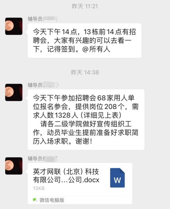 辅导员积极转发相关就业信息