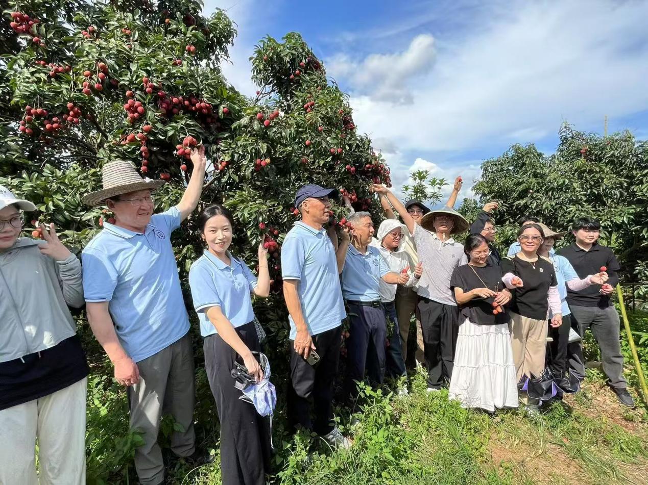 清晨,寿星教师们齐聚增城荔枝文化公园,在郁郁葱葱的荔林中开启了一场别开生面的采摘活动。老师们三两结伴,亲手摘下晶莹饱满的荔枝,欢声笑语间交流采摘技巧,分享岭南佳果的甘甜。党委书记杨惠现场即兴赋诗一首,以"红云满枝头,桃李共此时"寄语教师们如荔枝般硕果累累;经理李培祥更化身"科普达人",为大家讲解增城荔枝的千年文化,寓教于乐中展现工商公司的人文关怀。