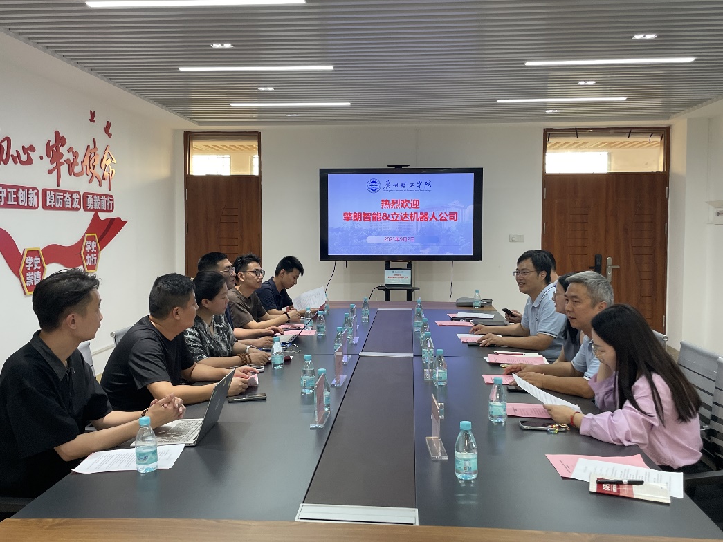 随后在座谈环节,各方代表围绕机器人技术开发合作、人才培养与市场拓展、共建校外实践教学基地等议题进行了深入交流。常务副董事长伏焕昌首先介绍了公司在产教融合与社会服务方面的举措与成效;上海擎朗智能科技有限公司渠道业务总监王川与广州市立达机器人有限公司总经理蔡淑蓓分别就擎朗公司总体情况及立达机器人产品线、客户定制需求与国内外市场布局进行了分享。