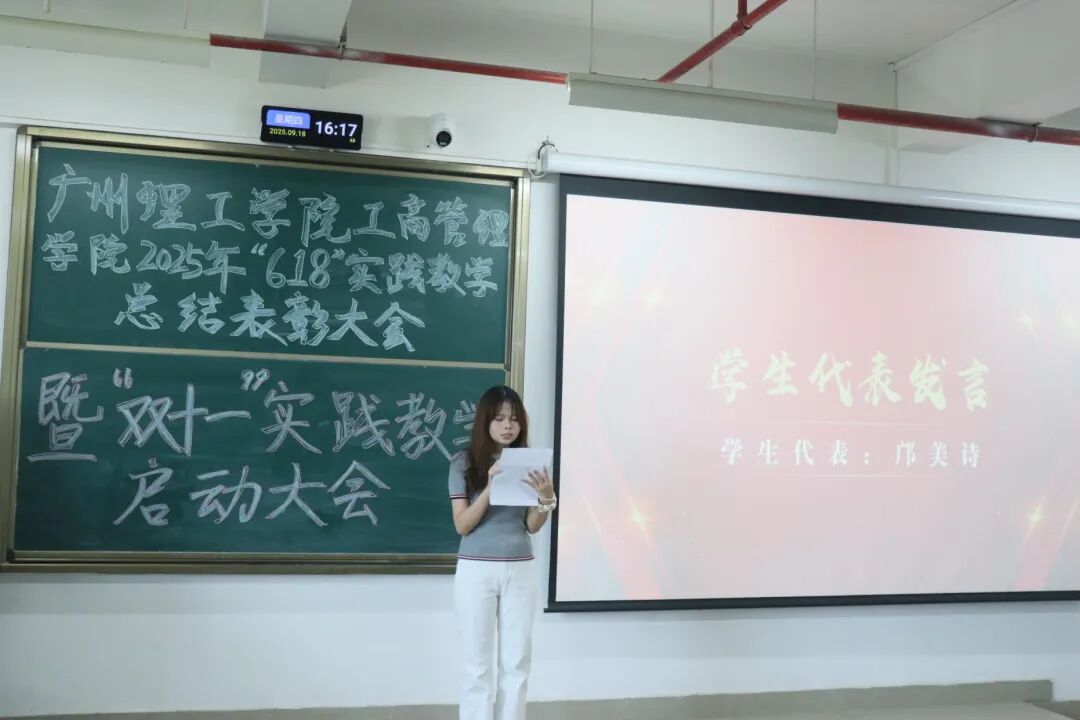 大会第一项议程,由郭磊总监针对“618”实践教学进行总结发言。他对公司高度重视此次实践教学、积极组织员工参与表示衷心感谢,充分肯定员工在实践过程中的优异表现——同学们快速将课堂理论转化为实战能力,在客服沟通、订单转化等工作中展现出扎实的专业素养与较强的适应能力。郭磊总监表示,企业对本次实践成果十分满意,期待未来与公司开展更高质量、更深度的校企合作,共同培养符合电商行业需求的应用型人才。
