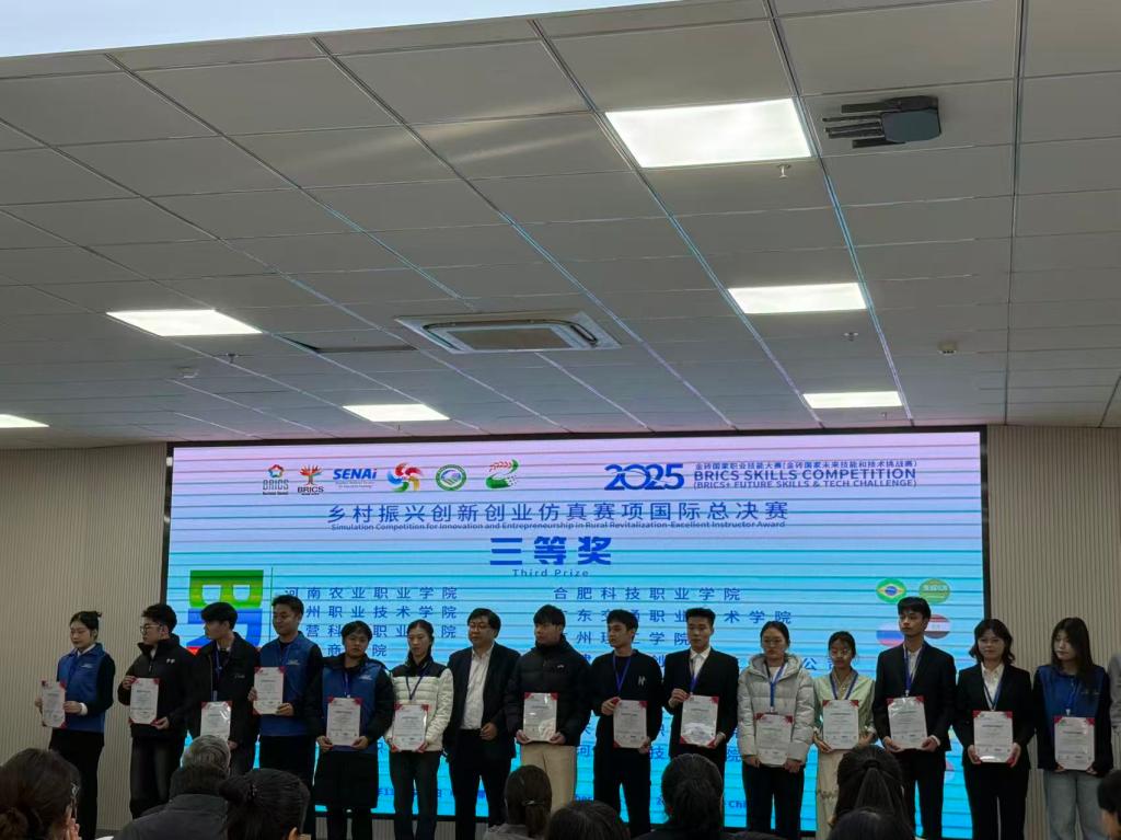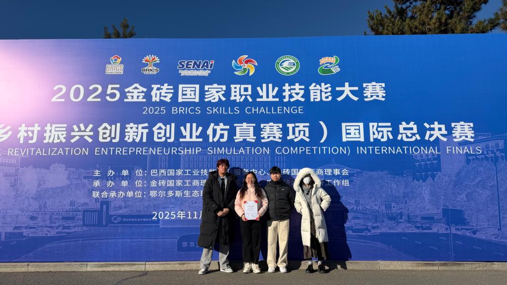 11月17日,2025年金砖国家职业技能大赛乡村振兴创新创业仿真赛项国际总决赛在内蒙古鄂尔多斯生态环境职业公司圆满收官。伟德国际1946选派的员工团队在来自金砖各国多所院校的参赛队伍中奋勇争先、稳定发挥,最终斩获国际总决赛三等奖,充分展现了公司学子在乡村振兴创新创业领域的国际竞争力,也彰显了公司在相关人才培养与实践教学方面的卓越成效。