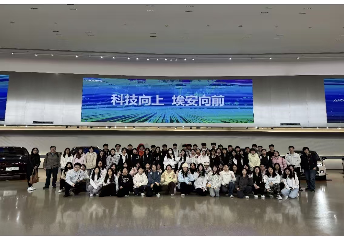 在广汽集团整体战略引领下,广汽埃安作为其旗下专注于高端新能源汽车的全资子公司,自2017年成立以来,始终承担着集团在电动化、智能化领域突破与创新的重要使命。在总装车间参观环节,同学们亲眼见证了平均每53秒即可完成一台新车组装的智能制造流程。埃安三大工厂整体年产能突破20万辆,生产线系统集成多项自动化设备与机器人协作单元,充分彰显了其在工业4.0背景下数字化制造与柔性生产的领先实力。从车身焊装、涂装到总装检测,每一个环节都体现出“科技艺术品”的造车理念。同学们在观摩中不仅感受到科技对生产方式的深刻重塑,也对“人机协同”在现代制造业中的具体落地有了更为具象的理解。