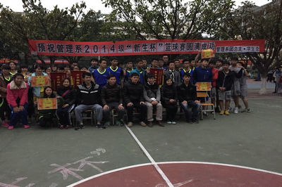 (通讯员 刘杰航)) 12月23日下午,历时两个多月的管理系2014级“新生杯”篮球赛落下帷幕。出席本次闭幕式的嘉宾有:管理系团总支书记钟劲老师、系辅导员林举航老师、王翔老师、2013级院团委·员工会主席钟任鹏、团总支·员工会主席团成员及各部门部长和副部长。