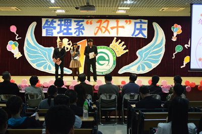 经理王培林首先上台致辞,对往届毕业生的返校表示了热烈欢迎。庆典活动期间播放了关于过去十年的回忆视频,并举行了一系列抽奖活动和精彩的表演;紧接着,员工代表和班主任代表依次上台发言,他们表达了对母校的深厚感情。最后伍曙主任上台发言,她细述了管理系的发展史,并对管理系的未来发展寄予希望。庆典结束后,各领导嘉宾合影留念并参加了游园活动和自助餐活动。