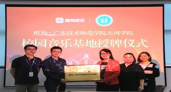 在现场的双方交流中,酷狗音乐副总裁陈英烽首先介绍了“酷狗校园音乐基地计划”。作为业内领先的在线音乐平台,酷狗音乐为帮助热爱音乐、具有原创能力的校园音乐人得到更好的发展机会,为校园音乐人才的创业提供良好的工作空间和资源共享空间。酷狗市场营销曾总监则表示:通过校企合作,酷狗将为校方老员工们提供场地及硬件支持,此外还会有音乐产业方面的专业培训、演出机会、推广资源等扶持行动,旨在打造最具特色的校园众创空间,大力扶持高校音乐人。