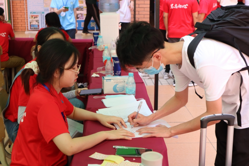 8月27日迎新现场,公司40名员工党员身穿党服、佩戴党员徽章,亮出党员身份、展示党员风采、勇担党员责任。他们热情主动,全面细致,以实际行动展现了新时代青年员工党员的良好风貌。随着新生陆续到校,迎新工作有条不紊地展开。在校道、报到处、迎新大本营、新生宿舍,总能看见员工党员们忙碌的身影,咨询答疑、指路指导、秩序维护、行李搬运,大家各司其职,给新生带来了温暖周到的入学体验。