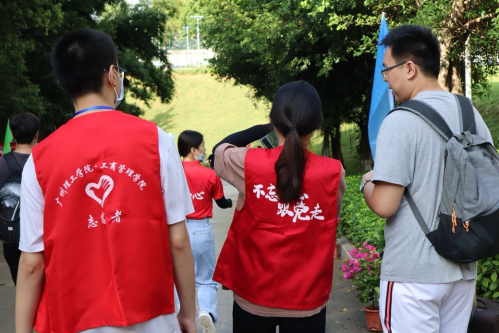 员工党员在校道指引新生前往宿舍(鄢璐摄)