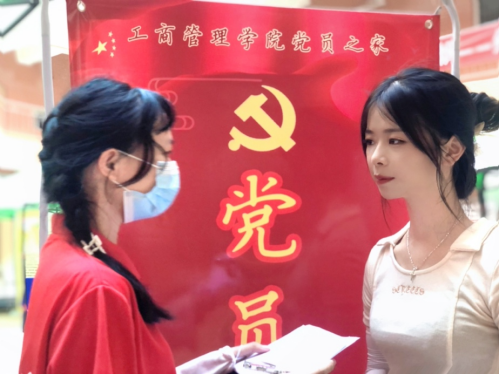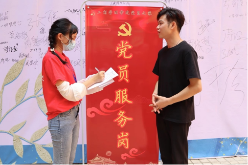 员工党员在党员服务岗为新生答疑解惑(李鸿杰摄)