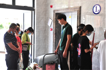 随后部分新生与家长陆续来到公司,公司工作人员热情地接待每一位新生,迅速找到宿舍安置行李,为家长及时安排座位休息,然后引领新生完成注册一系列手续,帮助新生领取钥匙,在全体人员的配合下有条不紊的进行着迎新工作。新生助班在注册处捧着资料,仔细核查员工信息,耐心的与新生沟通。他们坚守着岗位只想要为学弟学妹做些什么,他们努力付出只想要新生与家长多份心安,他们再苦再累只想要新生对公司更加肯定。