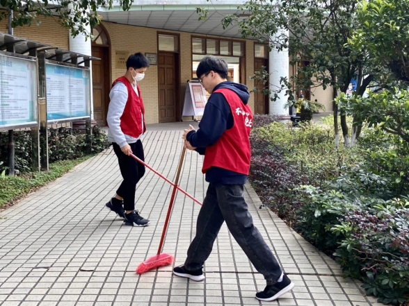 下午3点,志愿者们于6栋中庭集合完毕。负责人梁俊龙同志进行简单的注意事项说明和人员安排后,志愿者们井然有序地前往被分配到的校道开展清洁工。