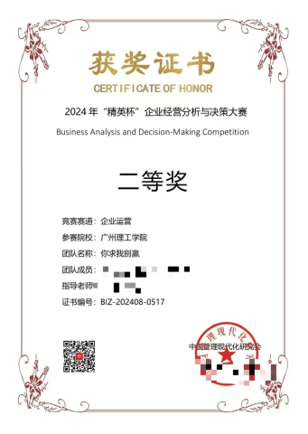 (叶宗典 梁廷杰)近期,由中国管理现代化研究会决策模拟专业委员会2024年“精英杯”企业经营分析与决策大赛。比赛分为企业运营赛道和数智商业经营赛道,共有初赛、决赛两个阶段。这场比赛不仅是一次深化教学改革、培养企业管理复合型人才的盛会。本届大赛共吸引663支队伍报名参赛,其中企业运营赛道涵盖133所院校的465支队伍,数智商业经营赛道则有来自76所院校的198支队伍。由刘延卿、林慧、李仪、谷佳桐老师共同指导,带领叶俊涛、叶宗典、梁廷杰、邓文林、林岱希、李凯斌等6支队伍参与全国决赛。
